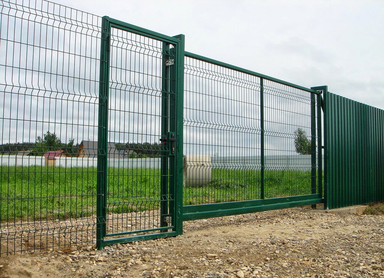 Откатные ворота из 3Д-гиттер на винтовых сваях (цена на бетонном основании +20000р)